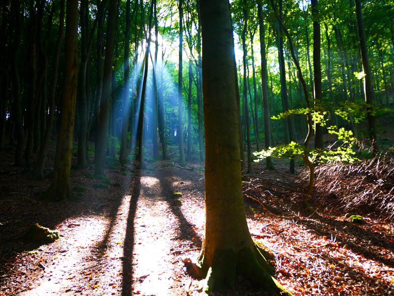 • 019 Die Herbstsonne strahlt durch den Blaetterwald