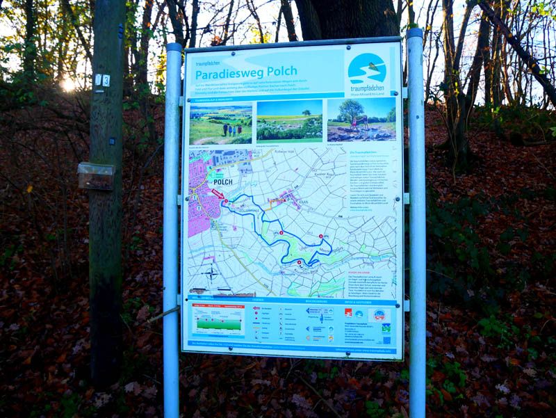 Dem erfolgreichen Konzept der Traumpfade hat man in den letzten Jahren mehrere, als "Traumpfädchen" bezeichnete Spazierwanderwege zur Seite gestellt. Dabei handelt es sich meist um verkürzte Traumpfadrouten. Einige wenige dieser Spazierwanderwege sind allerdings vom Verlauf der Traumpfade abgekoppelt und verfügen über ein Alleinstellungsmerkmal. Zu letzteren zählt neben dem Traumpfädchen Kleiner Stern und dem Nette-Romantikpfad auch das nachfolgend beschriebene Traumpfädchen Paradiesweg Polch. Ohne größere Höhendifferenzen schlängelt sich die Route des Paradiesweges auf breiten Feld- und Wiesenwegen über das nahezu brettebene Maifeld. Von den wenigen sanften Erhebungen bieten sich dem Wanderer traumhafte Fernsichten über diesen, ausgesprochen fruchtbaren Teil der Osteifel. Im zweiten und schönsten Teil des Streckenverlaufes wird das idyllische Polcher Bachtal durchwandert.