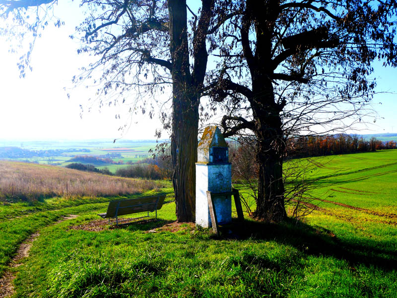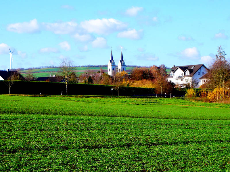 Wir beginnen die Wanderung am Parkplatz vor dem Schützenhaus der St. Sebastianus Schützenbruderschaft Polch. Hier steht kostenloser Parkraum in ausreichender Zahl zur Verfügung. Ein breiter Waldweg führt anfangs durch einen Buchenhain und läuft sodann geradewegs in die freie Feldflur hinaus. Nach einem scharfen Rechtsschwenk auf dem Plateau des kaum wahrnehmbaren Blumenberges wird die Asphaltpiste der K46 überschritten und an einem Gehölz entlang marschiert. Links des Weges zeigt sich dabei in nicht allzu weiter Ferne der Polcher Ortsteil Kaan, während kurz darauf zur Rechten ein erster bemerkenswerter Blick über das Maifeld schweift und auf den Start- und Zielort Polch fällt. Wir befinden uns jetzt in den Umgebungen des Uhlen- und Kuckertsberges. Beide Erhebungen bieten traumhafte, fast unbegrenzte Fernblicke über das Maifeld. Die markante Stiftskirche von Münstermaifeld ist zu sehen und die Vulkankegel der Osteifel zeigen sich am Horizont. Nach einem weiteren ebenen Verlauf führt die Route sanft ansteigend zum Bildstock am Wingert hinauf. Auch von dieser kleinen Erhebung zeigt sich ein grandioses Osteifelpanorama.