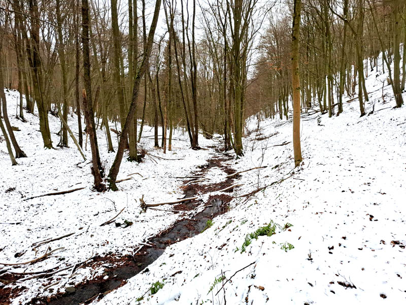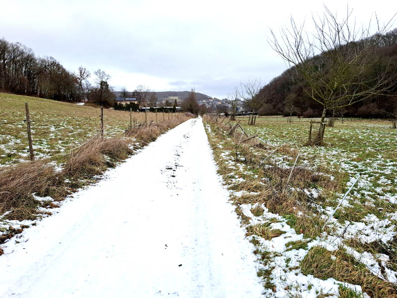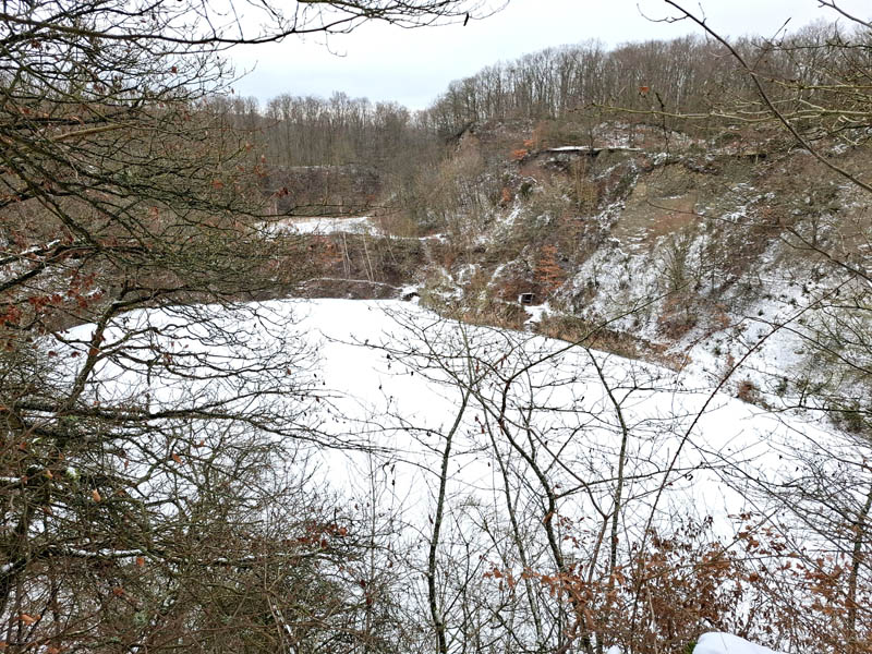 Auf der Perlerbachrunde am frostigen und zugefrorenen Rodder Maar
