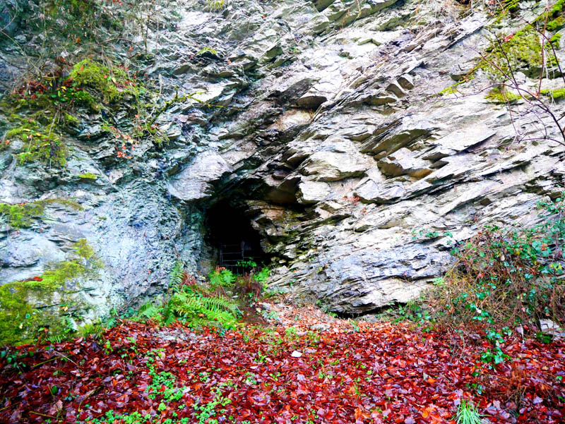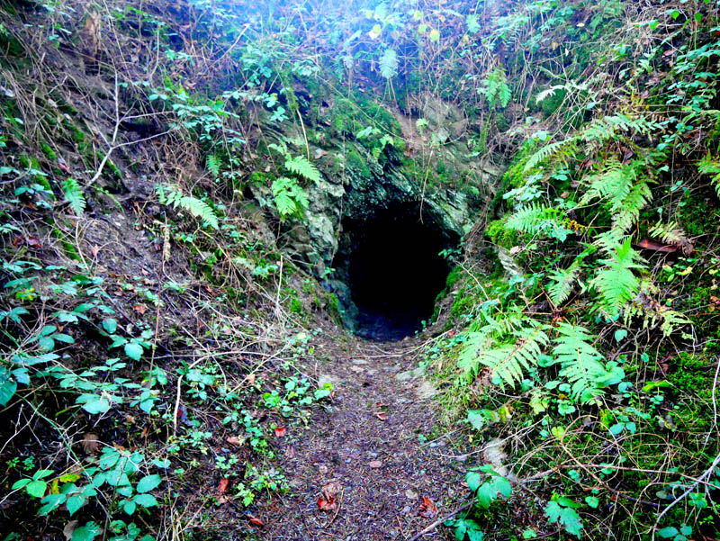 Im Schastebachtal treffen wir auf einen ehemaligen Bergwerksstollen in dem Eisenerze abgebaut wurden