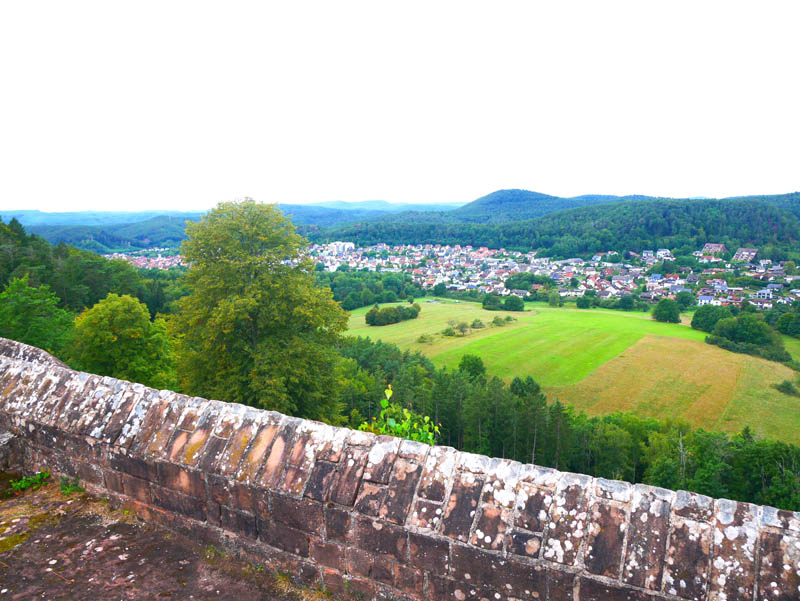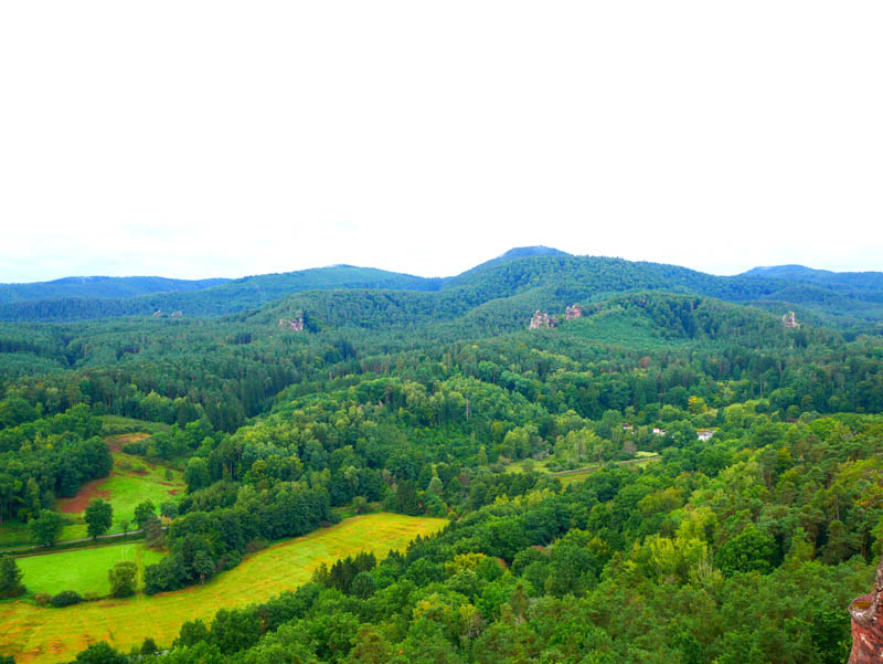 Von der imposanten Felsenbastion des Hochsteinmassivs schweift der Blick ins Dahner Felsenland