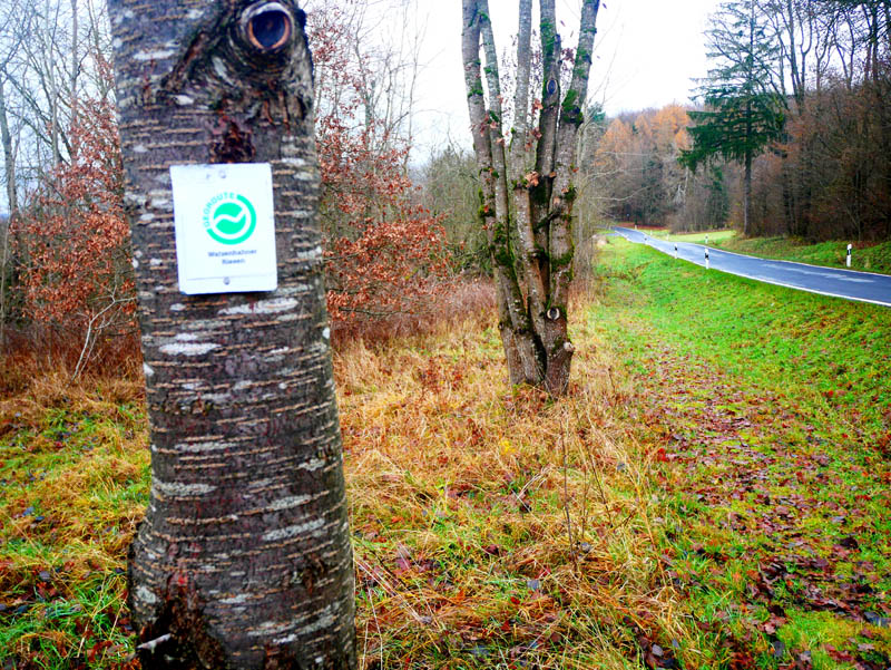 Die Wäller Tour GeoRoute Watzenhahner Riesen ist nicht mit dem üblichen Wegezeichen der Wäller Touren gekennzeichnet. Vielmehr trägt die Rundwanderung die grüne Beschilderung auf weißem Grund der GeoRouten auf dem Westerwald.