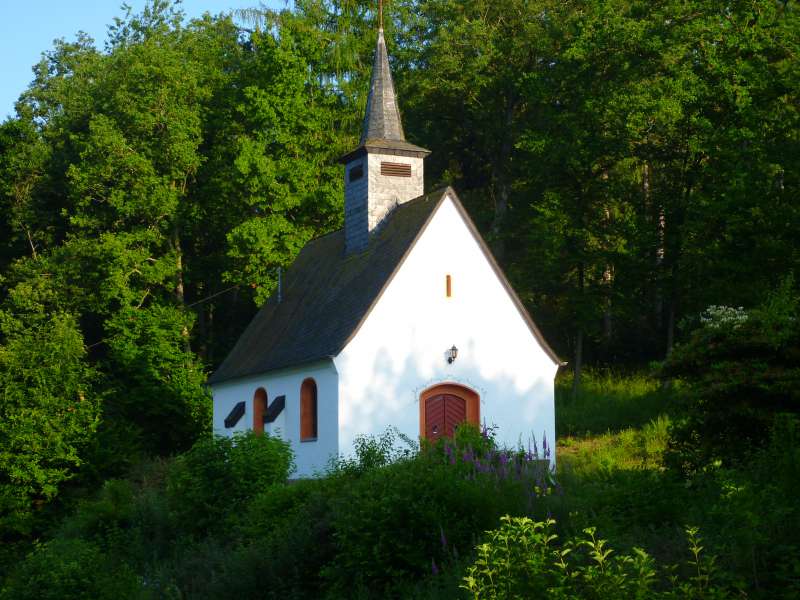 Aus der Ortschaft Aremberg steigen die Wanderer über eine holprige Pflasterpiste steil bergan zur Schlossruine Aremberg hinauf. Sie wurde auf einem Vulkankegel errichtet, der mit seinen 623 landschaftsprägenden Höhenmetern den höchsten Punkt des Ahrsteiges markiert. Die einst stattliche Höhenburg wurde im Jahre 1166 erstmals urkundlich erwähnt und ausgangs des Mittelalters zu einem Schloss umgebaut. Sie diente als Stammsitz der Herzöge von Aremberg. Der Burgturm aus dem Jahre 1854 kann gegen Voranmeldung bestiegen werden und gestattet eine herausragende Rundumsicht. Vom Burgberg führen dann schmale, idyllische Waldpfade steil bergab nach Eichenbach. Aus dem Ortskern geht es hinauf zur Eichenbacher Kapelle und dann rechts schwenkend in die offene Feldflur.