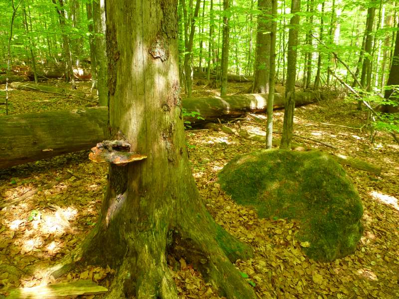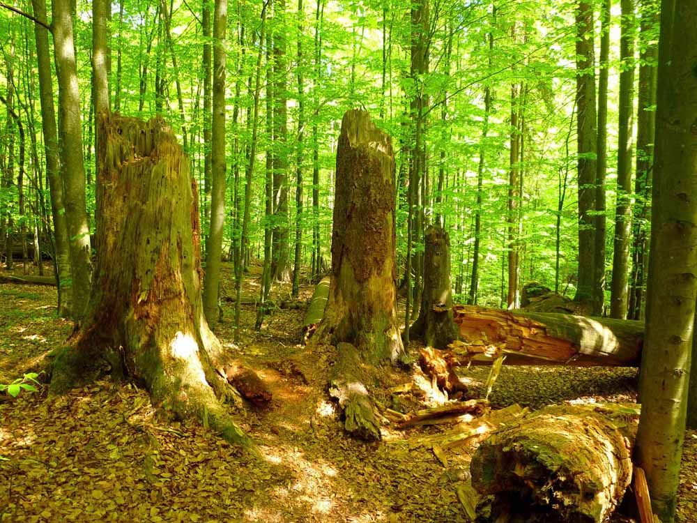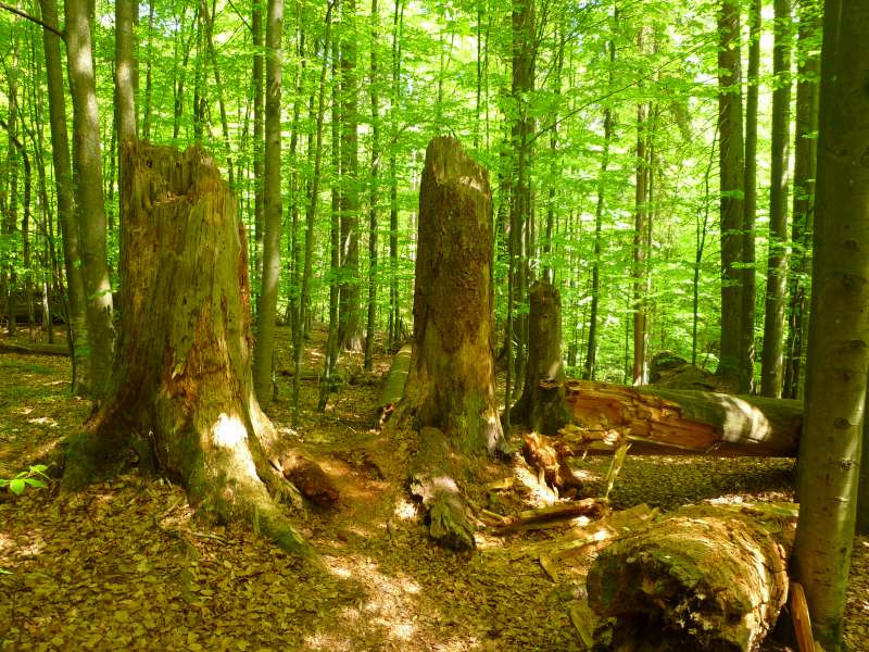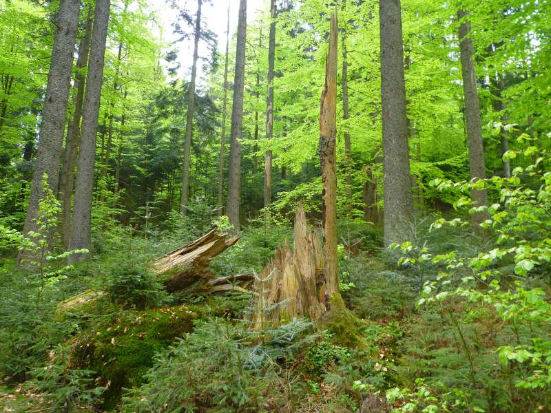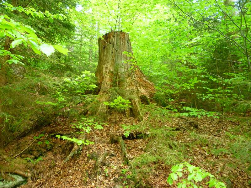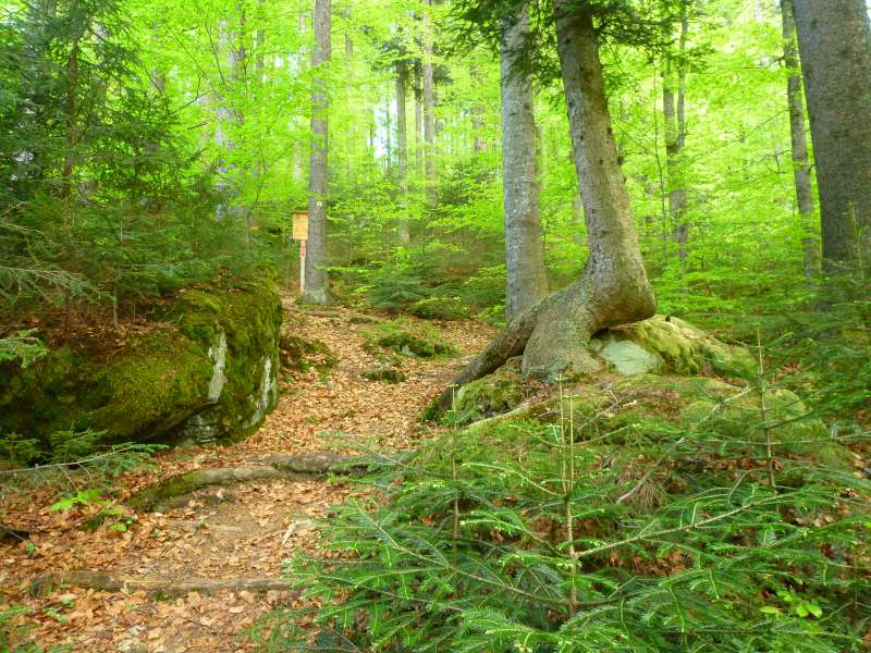 Hier folgt die Gruppe dem 500 Meter langen, unmarkierten Urwald-Erlebnisweg, der nur bei guter Witterung, insbesondere nicht bei Sturm, beschritten werden darf. Mit allen Sinnen kann man hier die Natur erleben und sich mit dem Lebensraum Wald auseinandersetzen. Neben uralten Totholzstämmen und vermodernden Wurzelstöcken ragen gewaltige Baumriesen eines intakten Bergmischwaldes auf. Überall sorgen junge, frisch auskeimende Sämlinge für die Bestandserhaltung dieser natürlichen Waldlandschaft.