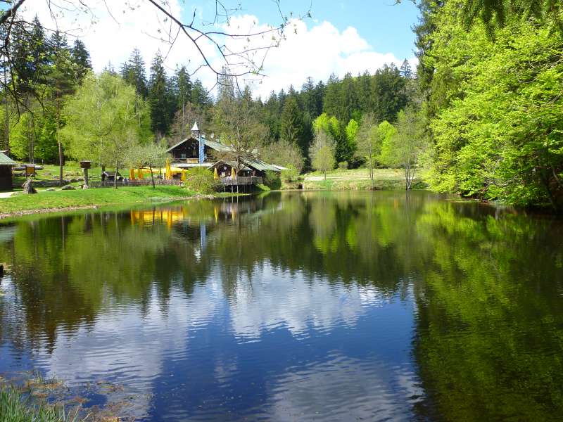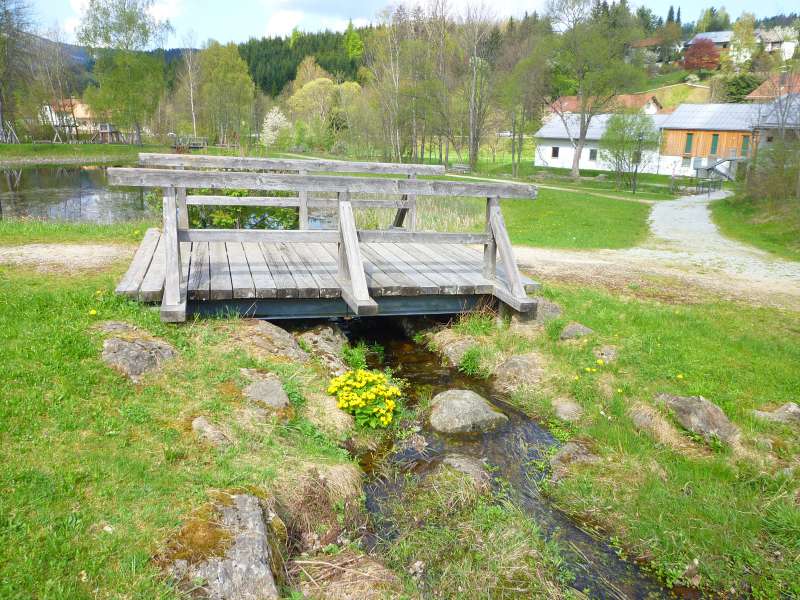 Besonders beeindruckend sind die gewaltigen Fichten. Mehrere Personen werden benötigt, um die dicken Stämme zu umfassen. Leicht abfallend führt uns der Urwald-Erlebnispfad zum Triftgewässer hinunter, dass neben dem Schwellsteig dereinst der Holztrift diente, also das geschlagene Holz mittels Wasserkraft beförderte.