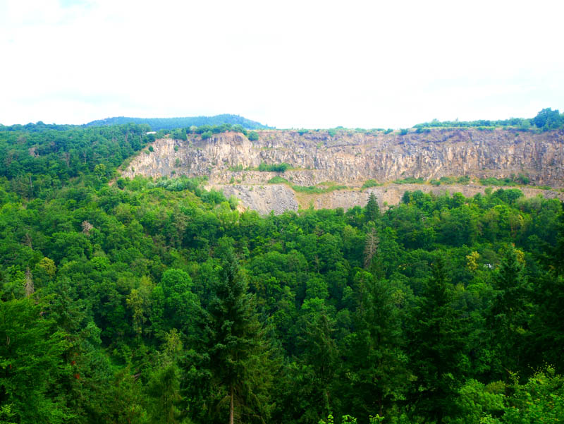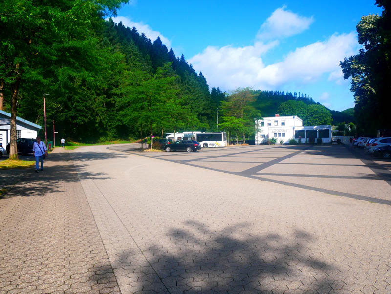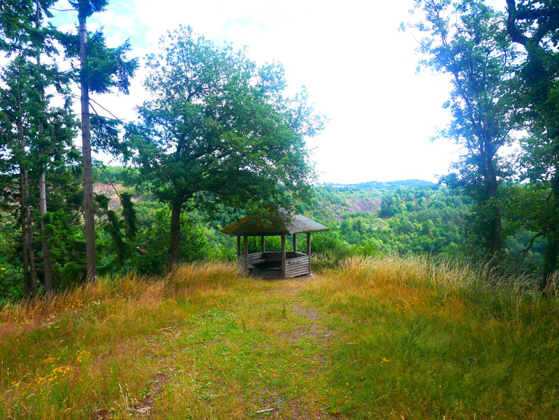 Die Tour beginnt auf dem großen Parkplatz am Nettetalstadion in Mayen. Hier steht kostenloser Parkraum in ausreichender Zahl zur Verfügung. Sogleich geht es auf einem schmalen Waldpfad windungsreich zum Heckenberg hinauf. Hier erwartet den Wanderer ein herrlicher Ausblick auf die Stadt Mayen mit der das Stadtbild prägenden Genovevaburg. Danach geht es in halber Hanglage unterhalb des Mayener Wohngebietes Knüppchen nahezu ebenen Fußes und zuletzt leicht abfallend in das Eiterbachtal hinein. Der Eiterbach wird überschritten, um jenseits des Gewässers auf einem erdigen Waldpfad in den Hang hinein zu steigen. Beim Einstieg folgt man einem nach links weisenden Wegweiser mit der Aufschrift "Fußpfad zum Luisenplatz". Stetig bergan wandernd treffen die Wanderer auf die von links einmündende Routenführung des Traumpfades Förstersteig, die uns bis hinauf zum Luisenplatz begleiten wird. Von der dort anzutreffenden Luisenplatzhütte und der daneben stehenden Ruhebank erfreuen wir uns bei kurzer Trinkpause an einem schönen Ausblick auf die Stadt Mayen. Auch ein Teil des weitläufigen Grubenfelds und das halbe Maifeld sind von hier aus gut einzusehen.