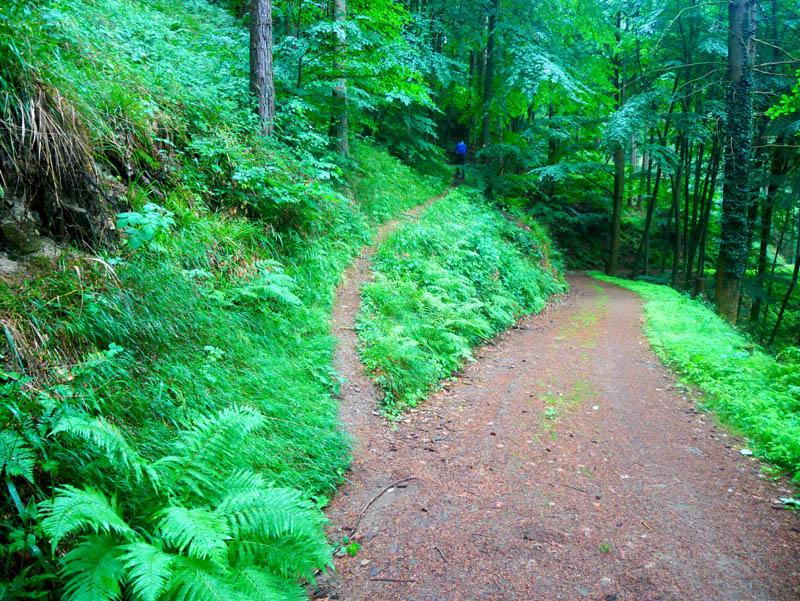 Wie der Bezeichnung zu entnehmen ist, besteht das Streckenprofil der Pfadigen Nettetalrunde am Osteifelweg in übergroßen Teilabschnitten aus schmalen, erdigen Waldpfaden. Breite Forst- und Wiesenwege werden ebenfalls beschritten. Asphaltiertes Geläuf ist überaus selten und eigentlich nur innerhalb der Bebauung von Mayen und St. Johann anzutreffen. Neben dem attraktiven Routenprofil gefallen die herrlichen Weitsichten über die Osteifel und die Tiefblicke ins windungsreiche Nettetal von Hochlayhütte und Silbersandblick. Ein besonderes Schmankerl ist natürlich die Besteigung des Hochsimmerturmes. Wer ein Wanderabenteuer der besonderen Art erleben möchte und bereit ist in kurzen Teilabschnitten zugewachsene und somit nicht immer leicht zu durchwandernde Pfade zu begehen, der sollte die Pfadige Nettetalrunde am Osteifelweg erwandern. Hart gesottene Pfadwanderer werden von der Routenführung begeistert sein. Aber GPX-Track und lange Wanderhose nicht vergessen!!!