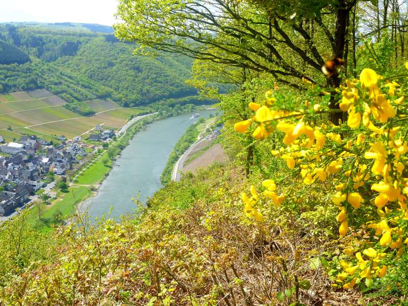 Schmale Wald- und Weinbergpfade und felsige Steige zeichnen die 18. Etappe des Moselsteigs aus, die sich auf einer Länge von 14 Kilometern durch die steilen Weingärten von Beilstein nach Cochem schlängelt. Traumhafte Aussichten von der Hangkante der Moselhöhen hinab ins Flusstal, ein rasanter Aufstieg durch ein enges Kerbtal und zum Schluss der Blick auf die märchenhaft schöne Reichsburg hoch über dem Etappenziel Cochem begeistern jeden Wanderer. Vom Weinort Beilstein unterhalb der Burg Metternich führt der Moselsteig in den Weinberg hinein. In halber Hanglage geht es in ständigem Auf und Ab durch die verbuschten, ehemaligen Wingerte.