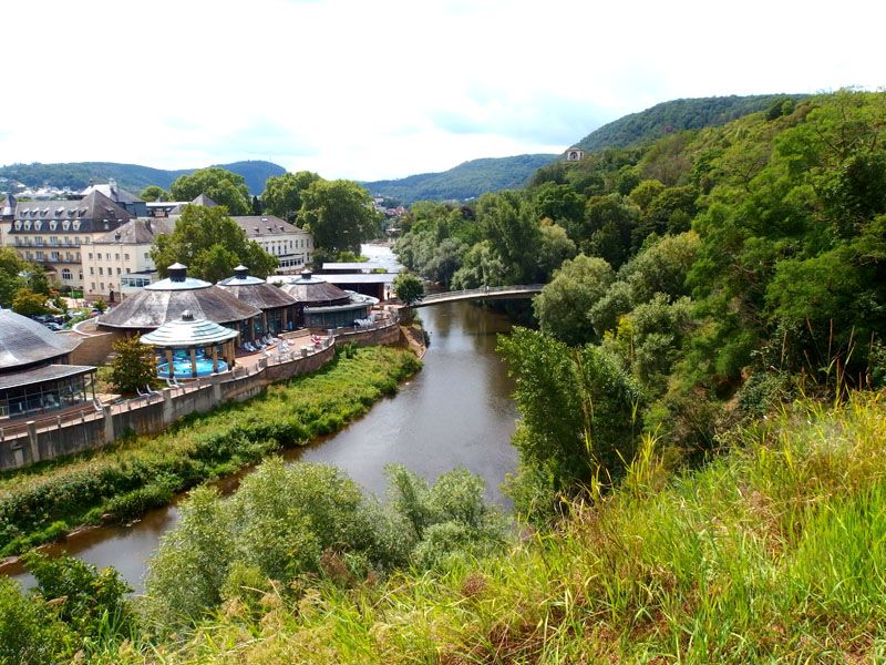 In Jahrtausenden hat sich die Nahe in die rotbraunen Rhyolithwände des Rotenfels hinein geschnitten