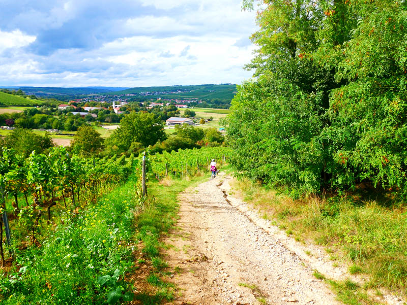 Durch ausgedehnte Weinberglagen mit herrlichen Fernblicken