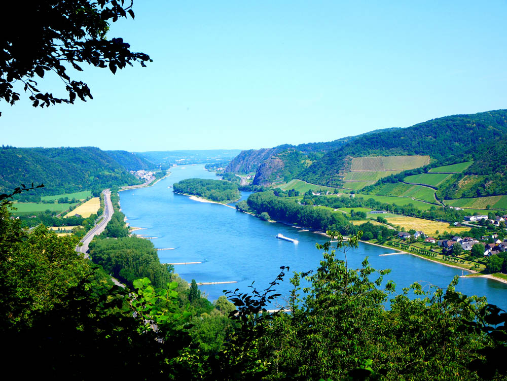Von der "Schönsten Weinsicht 2016" fällt ein erregender Blick auf die Weinlagen von Leutesdorf