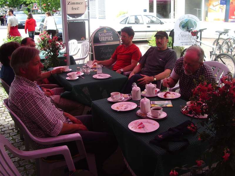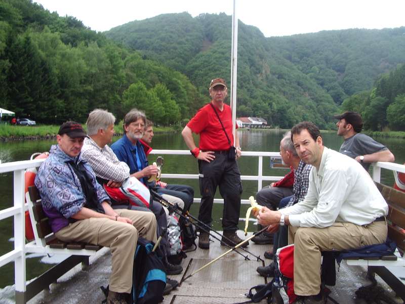 Kurz darauf gelangen die Wanderer zur Burg Neu-Montclair. Im Jahre 1168 wurde die Vorgängerburg Alt-Montclair erstmals urkundlich erwähnt. Sie galt als eine der bedeutendsten mittelalterlichen Befestigungsanlagen in den deutschen Landen, wurde aber 1351 eingenommen und geschleift. Die heute sichtbaren Gemäuer gehörten zur Burg Neu-Montclair die im frühen 15. Jahrhundert errichtet wurde. In den Jahren 1992/93 wurden umfangreiche Renovierungsarbeiten durchgeführt. So ist die Anlage für Besucher überaus sehenswert, thront sie doch hoch über der Saarschleife. Besonders der schmale Übergang in Schwindel erregender Höhe vom Bergfried zur Aussichtsplattform, mit einem tollen Talblick auf die Saar, fasziniert jeden Besucher. Nach dieser aufschlussreichen Exkursion ins Mittelalter folgen wir der Beschilderung der Tafeltour und einem Serpentinenpfad hinunter ins Saartal. Auf dem breiten Saaruferweg umrunden wir die Saarschleife und gelangen zum Fährübergang. Auf Glockenruf bringt uns die Fähre Welles ans andere Ufer (Wichtig: Fährzeiten der Fähre Welles siehe unten). Im Gasthaus, gleich neben dem Anleger kehren wir ein, um Mittagsrast zu halten.