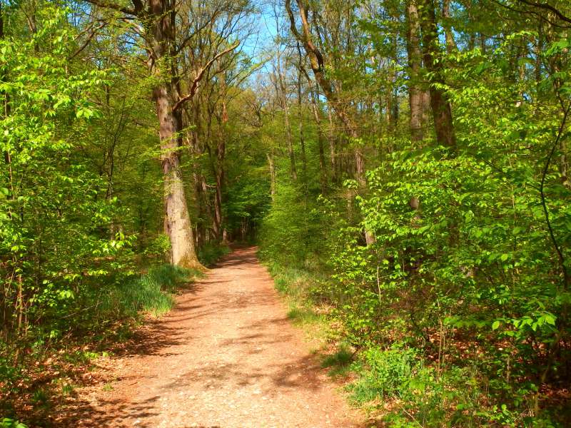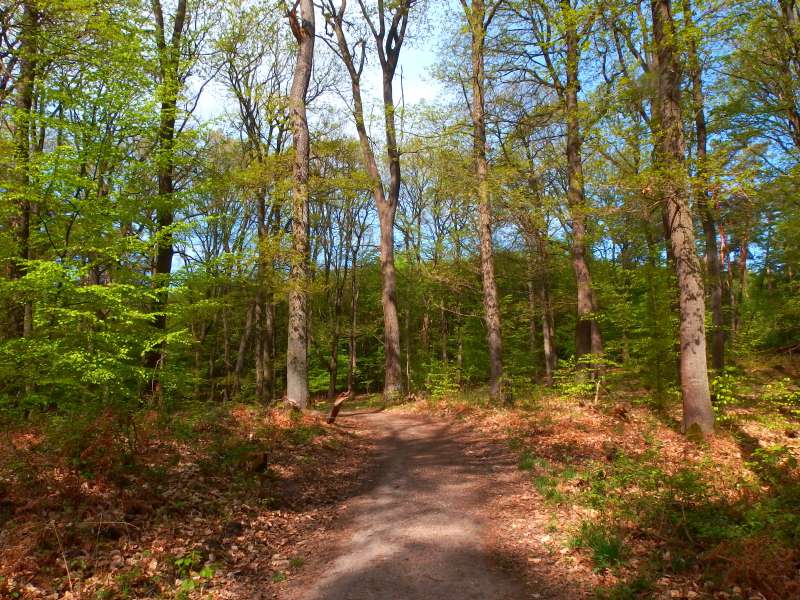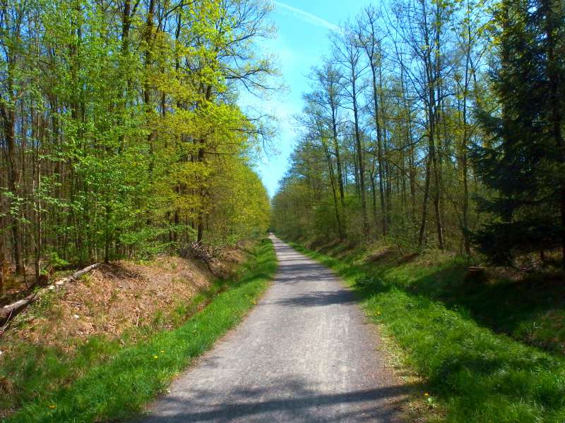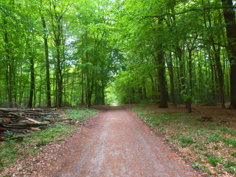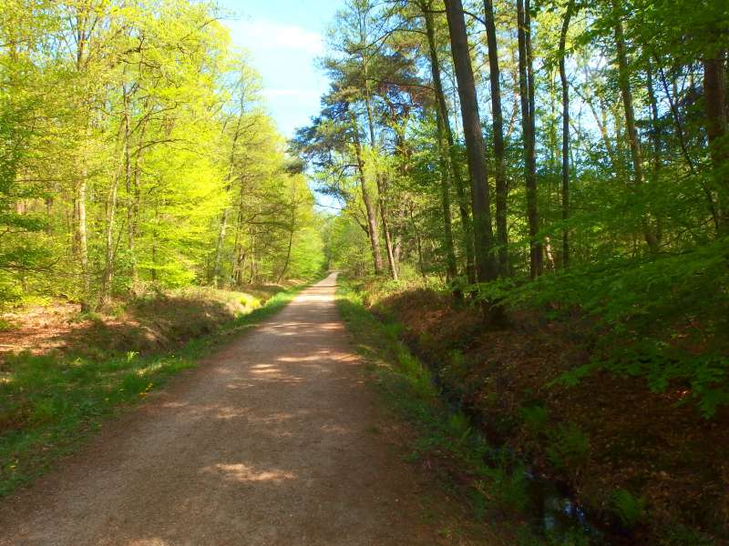 Der Heideweg läuft auf schnurgeraden, recht eintönigen Forstwegen durch den Lohmarer Wald