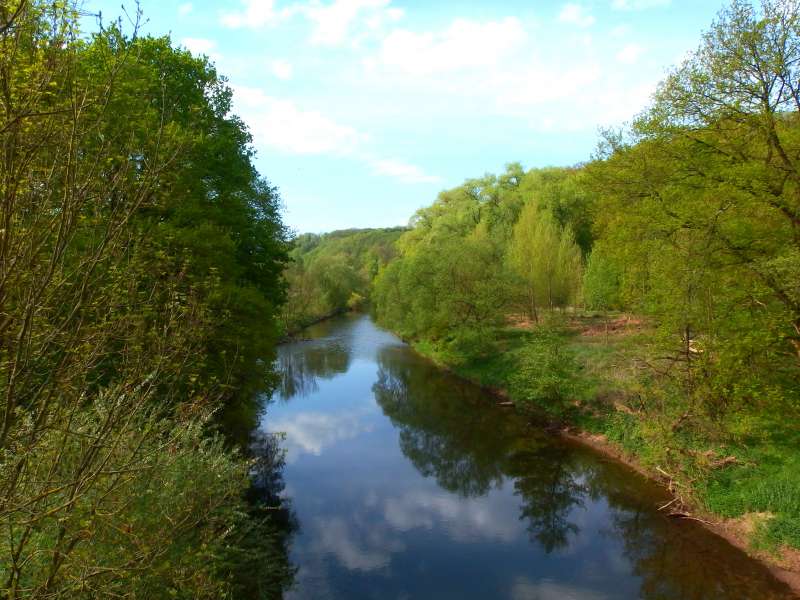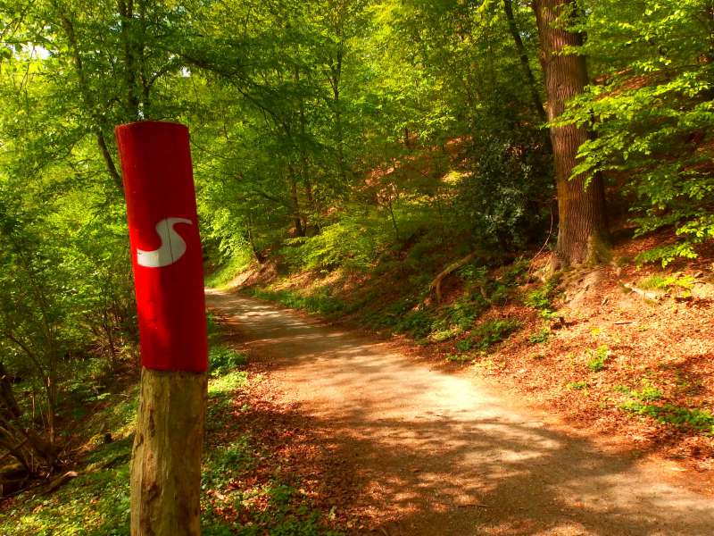 Wir beginnen die Wanderung über den Heideweg am Parkplatz Siegelsknippen in Lohmar, Ortsteil Heide. Nach dem Überschreiten der B 56 läuft die Route ein kurzes Stück an der viel befahrenen Bundesstraße entlang und schwenkt dann nach rechts in den Lohmarer Wald hinein. Breite, geschotterte, meist geradeaus laufende "Forstautobahnen" gestalten hier das Streckenprofil. Nach zwei Richtungswechseln und einer Wanderdistanz von fünf Kilometern führt uns der Heideweg bis an den Ortsrand der Stadt Lohmar. Die Gruppe durchwandert das Stadtgebiet, betrachtet die schmucke Pfarrkirche St. Johannes am gegenüber liegenden Stadtrand und quert dann die A 3 und kurz darauf auch den Fluss Agger über eine Straßenbrücke. Der siebzig Kilometer lange Nebenfluss der Sieg entspringt in der Nähe von Meinerzhagen, speist die Aggertalsperre und mündet dann zwischen Troisdorf und Siegburg in die Sieg.