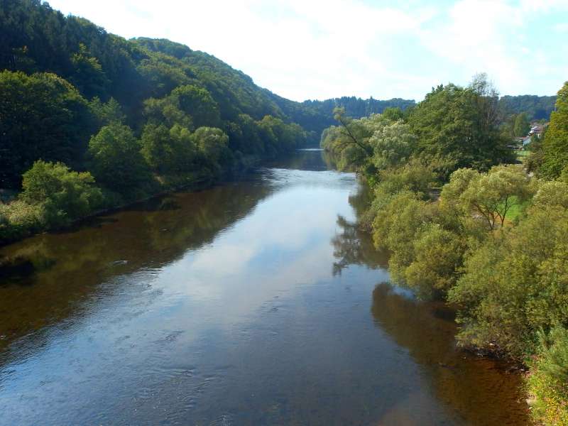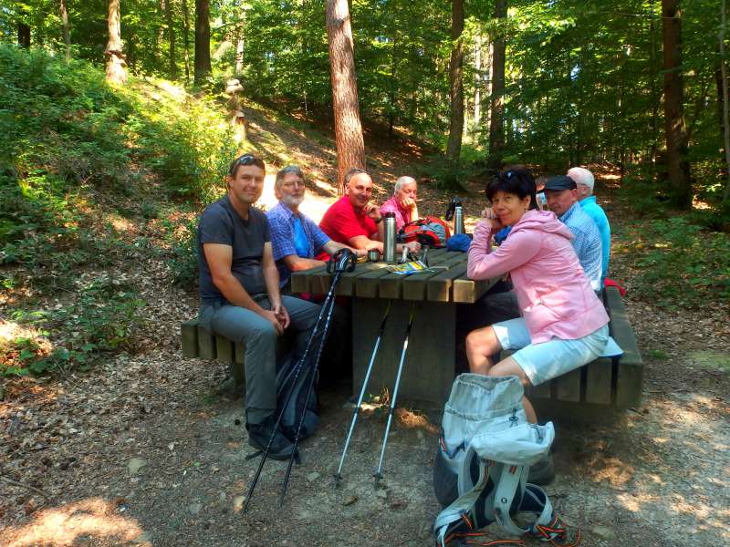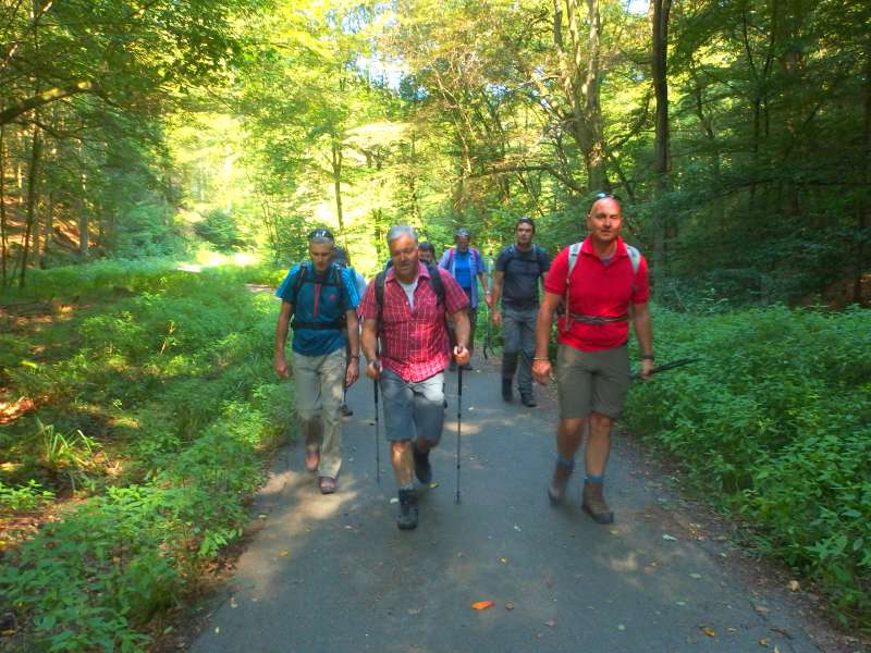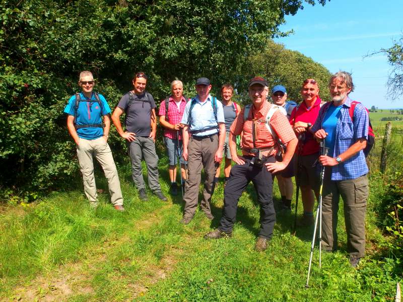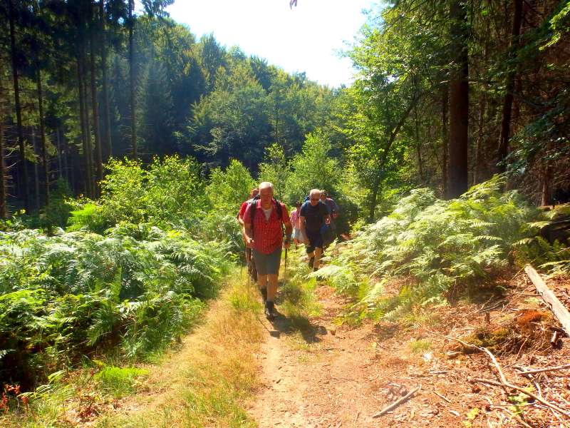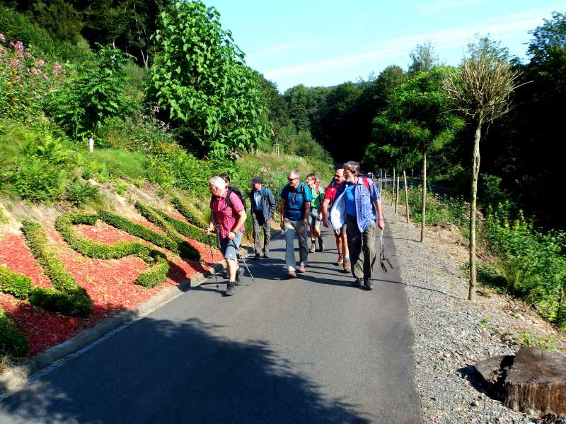 Die Wanderung beginnt am Bahnhof Herchen und führt die 10köpfige Truppe mit der Zuwegung des Siegsteigs eine Weile an der Landstraße nach Stromberg entlang. Auf asphaltiertem Grund steigt die Route an der Bushaltestelle „Haus Herchen“ durch ein parkähnliches Gelände in den Hang hinein. Schmale Saumpfade führen sodann mit der Hauptroute des Natursteigs Sieg durch verbuschtes Gelände mit zahlreichen Brombeersträuchern, die köstliche Früchte tragen, hinüber nach Stromberg. Die Ortschaft wird durchwandert und die Sieg mittels einer Straßenbrücke überquert.