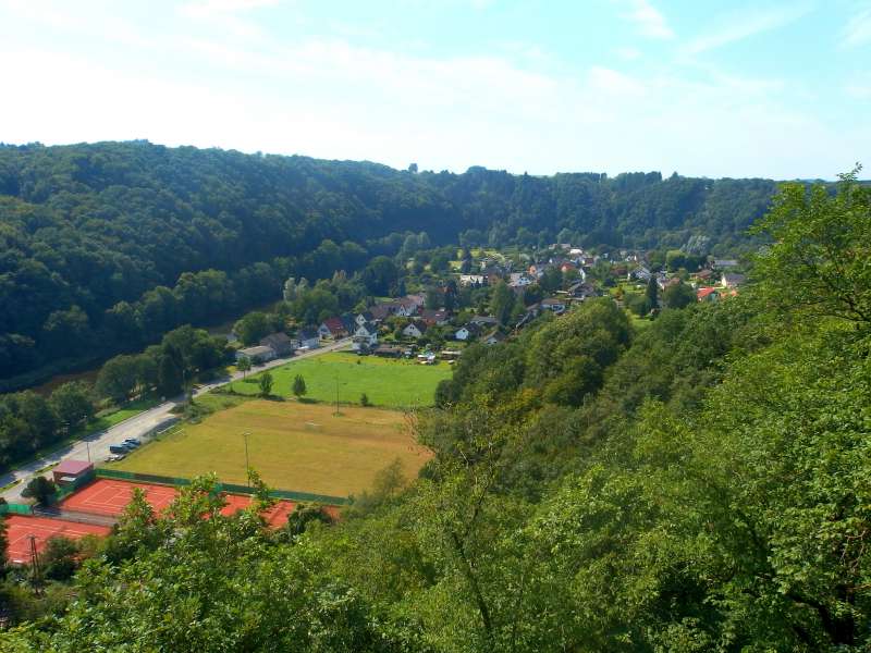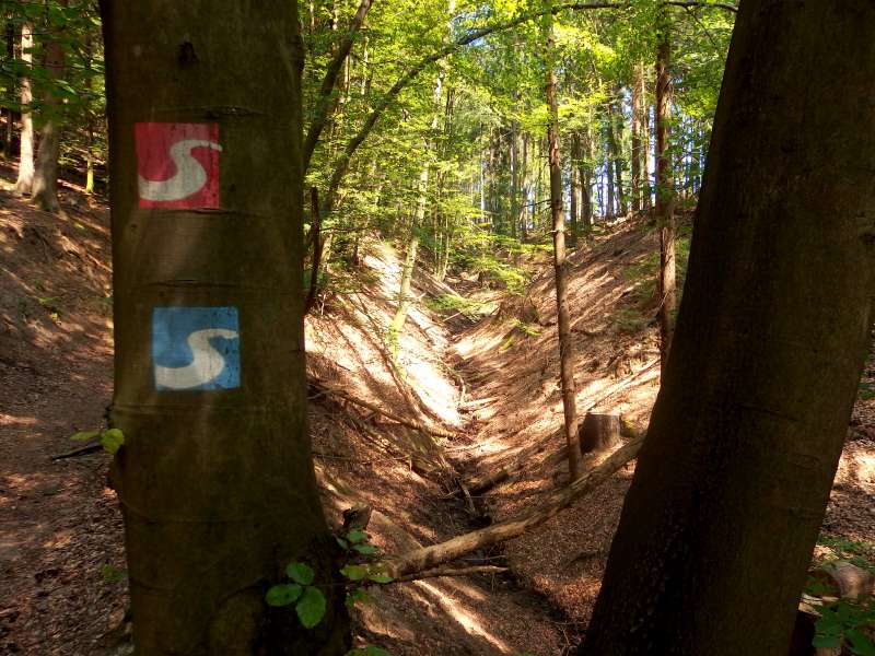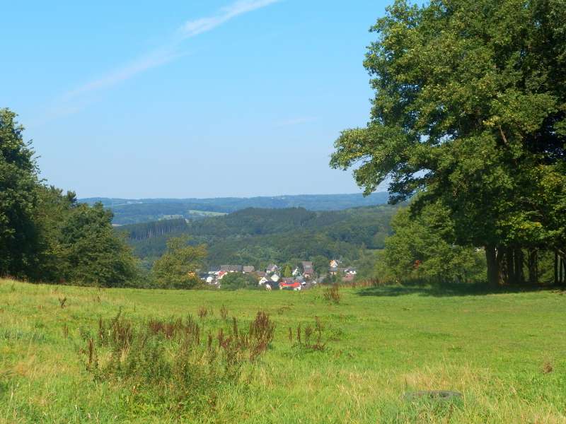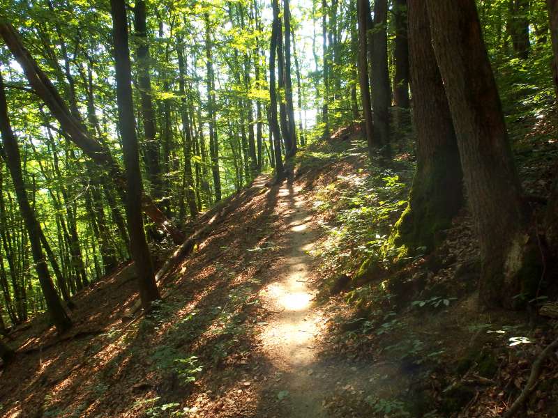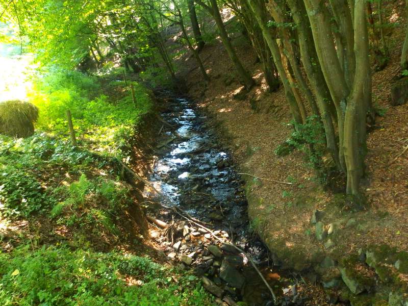 In den Ufergehölzen lauern mehrere Kormorane auf frische Beute. Dabei halten sie ihre ausgebreiteten Schwingen in die Sonne, um das schwarz glänzende Gefieder zu trocknen. Ein kurzes Stück folgt der Natursteig dem Flusslauf, um dann scharf links schwenkend in das enge Kesselbachtal hineinzusteigen. Die Gruppe wandert jetzt in das Naturschutzgebiet „Wälder auf dem Leuscheid“ hinein, in dem zahlreiche Bäche entspringen und mehrere Biotope anzutreffen sind. Unverständlicher Weise hat man den Forstweg geteert, der die Wanderer stetig bergan und mit mehreren Richtungswechseln zu den frühmittelalterlichen Ringwällen hinauf führt. Wer hier dereinst Schutz gesucht und gelebt hat, ist nicht mehr zweifelsfrei festzustellen. Man datiert die Erbauung der 8 Hektar großen Anlage, auf den Beginn des 9. Jahrhunderts. Sie liegt auf einer Bergkuppe, die auf drei Seiten steil ins Tal abfällt und somit bereits durch ihre natürliche Lage Schutz vor Bedrohungen bot.