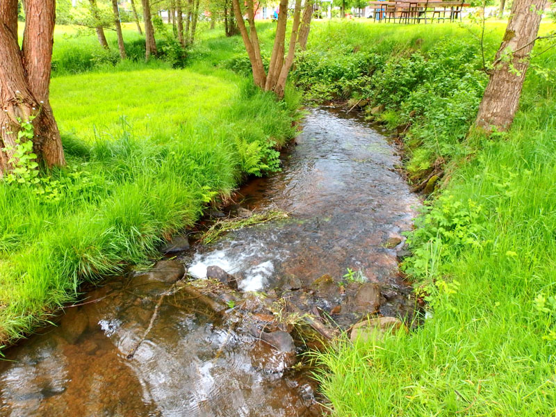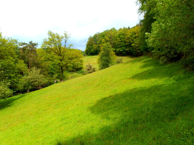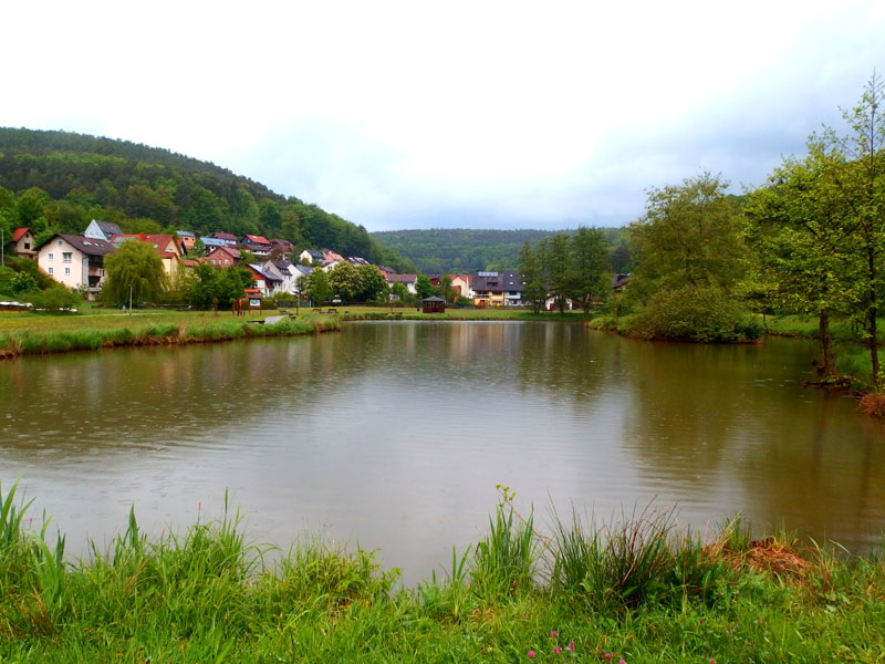 Die Spessart-Rundwanderung Räuberland-Pfad Höhen und Tiefen hält was sie verspricht, läuft die Tour doch tief in das Elsavatal hinein und führt auf naturbelassenen Pfaden, Wald- und Wiesenwegen über aussichtsreiche Höhenzüge hinweg. Dabei zeigt sich der Streckenverlauf recht kurzweilig. Mal geht es durch spessarttypischen Mischwald, dann wieder auf Freiflächen hinaus, die herrliche Panoramablicke ermöglichen. Auch die Historie kommt auf der 13 Kilometer langen Route nicht zu kurz. Neben der sehenswerten Martinuskirche im Rokokostil, führt der Räuberland-Pfad an den ehemaligen Gemäuern eines Eisenhammerwerkes vorbei. Zwei kleine Seen, überaus idyllisch in die waldreiche Spessartlandschaft eingebettet, perfektionieren das schöne Wandererlebnis rund um Heimbuchenthal.