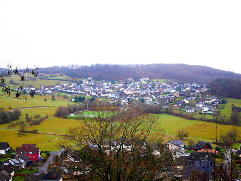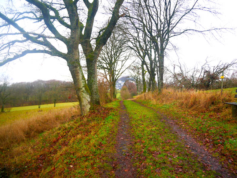 Mehrere Möglichkeiten bieten sich an, um in die GeoRoute Watzenhahner Riesen zu starten. Neben dem Wanderparkplatz Kranstein an der K95 stehen die Westerwaldorte Weltersburg, Berzhahn und Girkenroth als Startpunkte zur Verfügung. Wir entscheiden uns für die letztere Variante und beginnen die Tour vom Friedhofsparkplatz in Girkenroth. Gleich zu Beginn überqueren wir die K97 und treffen jenseits der Asphaltpiste auf die Wegführung der GeoRoute, die vom Ruhberg kommend rechtsseitig einmündet. Wir durchwandern ein lichtes Gehölz, streifen den Ortsrand von Girkenroth und wandern sodann ebenen Fußes über weiche Wiesenwege nach Weltersburg. Der kleine Westerwaldort gruppiert sich um die steil abfallenden Flanken des 436 Meter hohen Burgbergs, auch Weltersburger Kopf genannt.